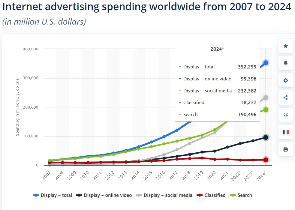 Potrivit Statista, în 2022 cheltuielile cu anunțurile video online s-au ridicat la aproape 75 de miliarde de dolari SUA, reprezentând astfel aproape 30% din cheltuielile totale cu anunțurile display la nivel mondial.